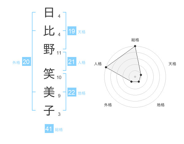 日比野 笑美子さんの総格は41画の5点!