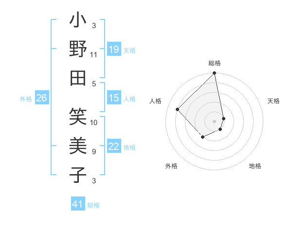 小野田 笑美子さんの総格は41画の5点!
