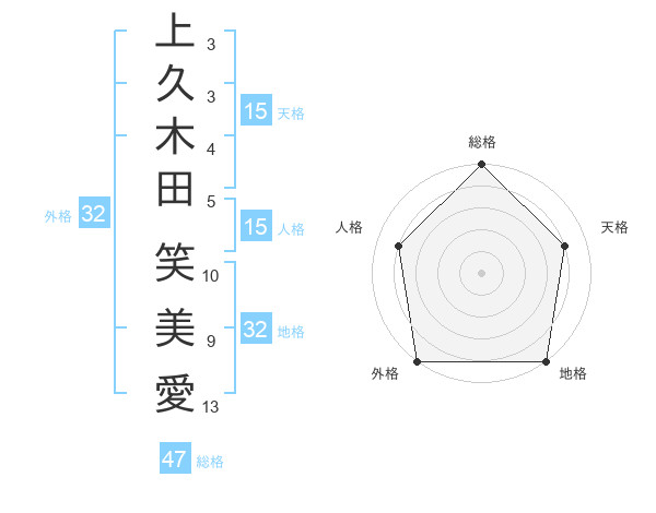 上久木田 笑美愛さんを姓名の画数から五運を鑑定