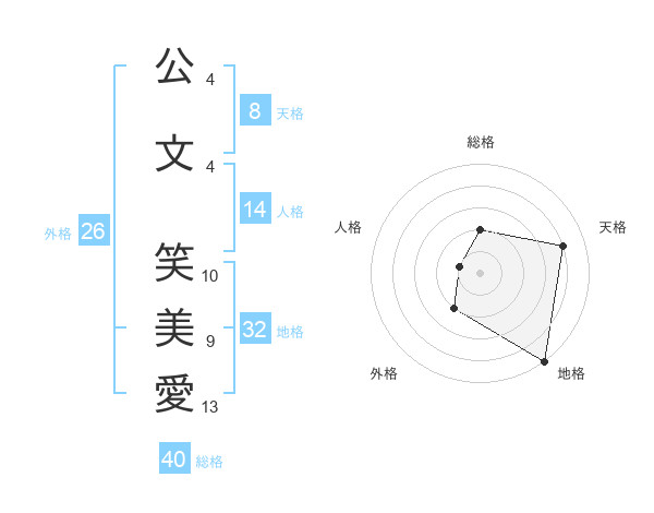 公文 笑美愛さんを姓名の画数から五運を鑑定