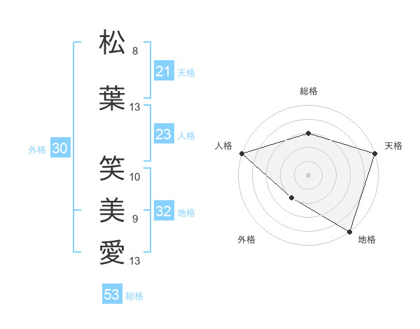 松葉 笑美愛さんを姓名の画数から五運を鑑定