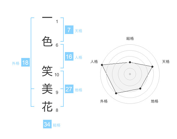 一色 笑美花さんを姓名の画数から五運を鑑定