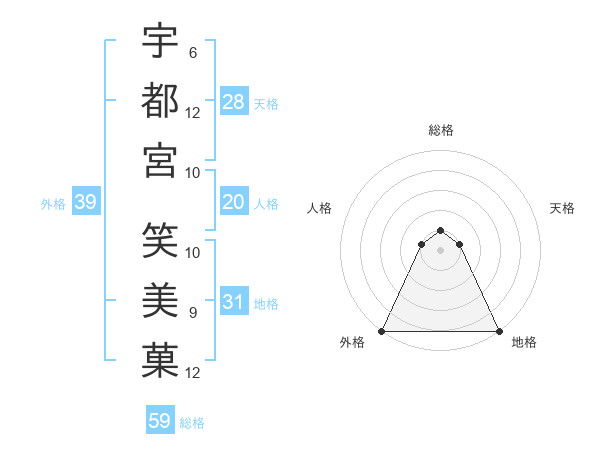 宇都宮 笑美菓さんを姓名の画数から五運を鑑定