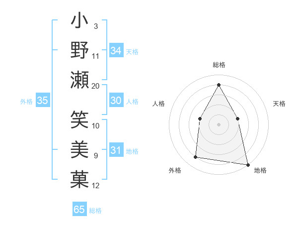 小野瀬 笑美菓さんを姓名の画数から五運を鑑定