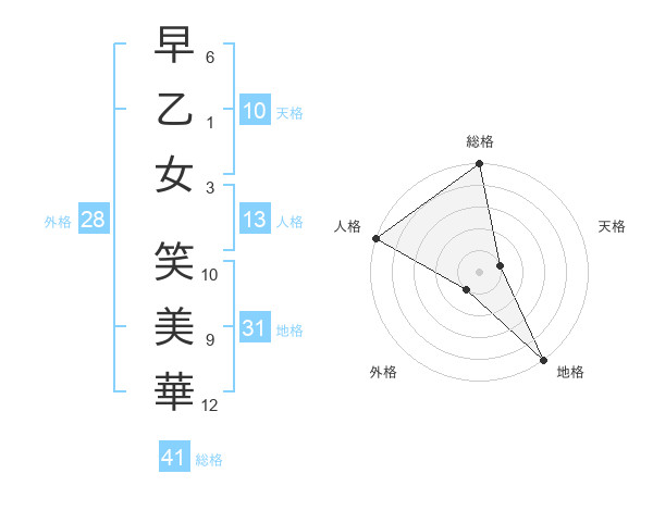 早乙女 笑美華さんを姓名の画数から五運を鑑定