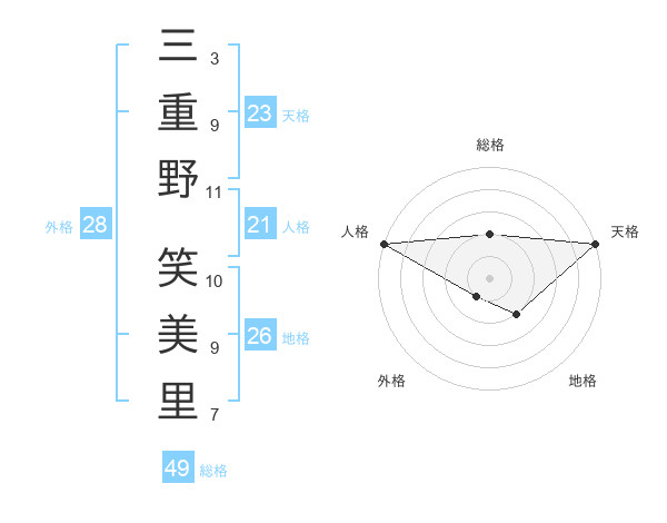 三重野 笑美里さんを姓名の画数から五運を鑑定