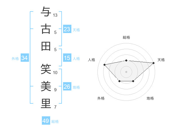 与古田 笑美里さんを姓名の画数から五運を鑑定