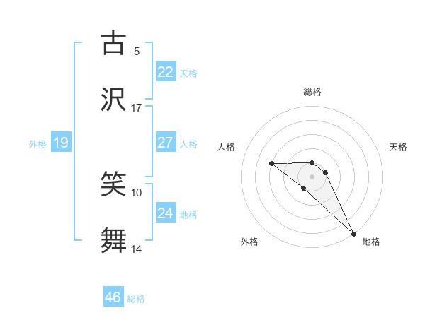 古沢 笑舞さんを姓名の画数から五運を鑑定
