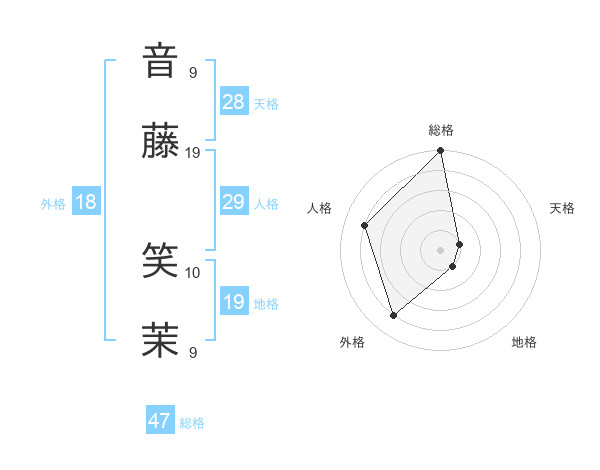音藤 笑茉さんを姓名の画数から五運を鑑定