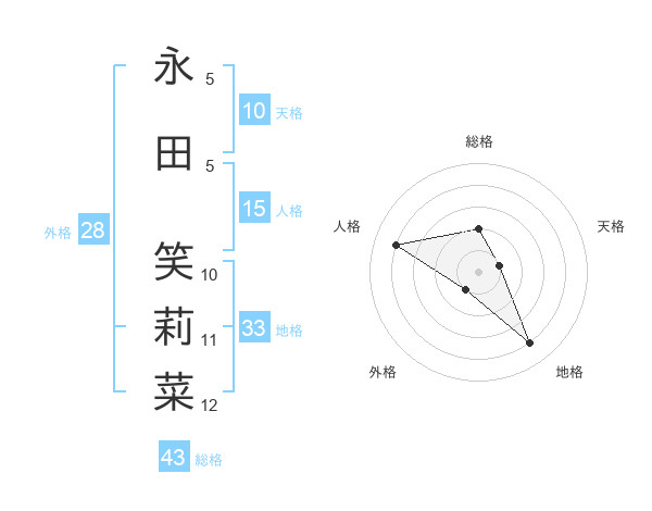 永田 笑莉菜さんを姓名の画数から五運を鑑定