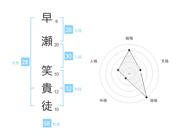 早瀬 笑貴徒さんの総格は58画の4点!