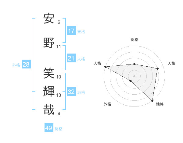 安野 笑輝哉さんの天格は17画の4点!