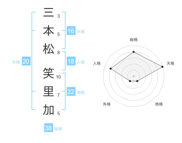 三本松 笑里加さんの天格は16画の5点!