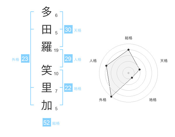 多田羅 笑里加さんを姓名の画数から五運を鑑定
