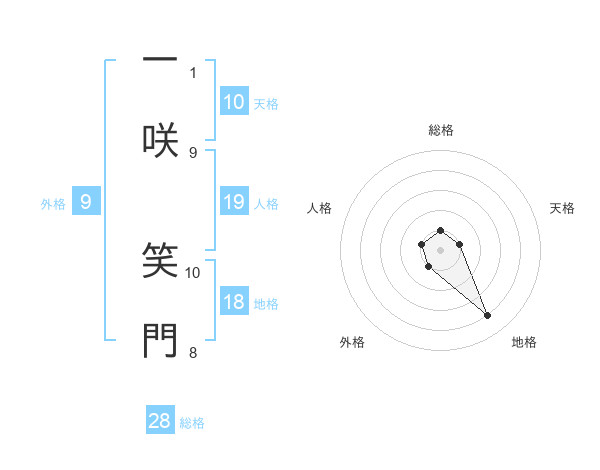 一咲 笑門さんを姓名の画数から五運を鑑定
