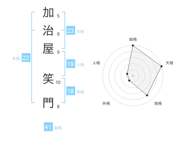 加治屋 笑門さんを姓名の画数から五運を鑑定
