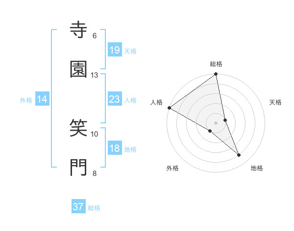 寺園 笑門さんの総格は37画の5点!
