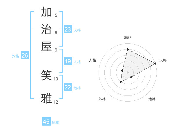 加治屋 笑雅さんの天格は23画の5点!