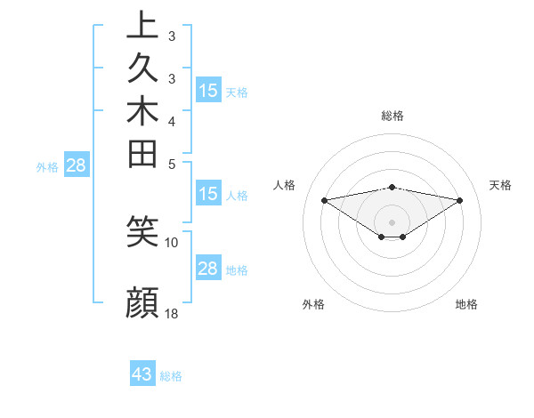 上久木田 笑顔さんの天格は15画の4点!