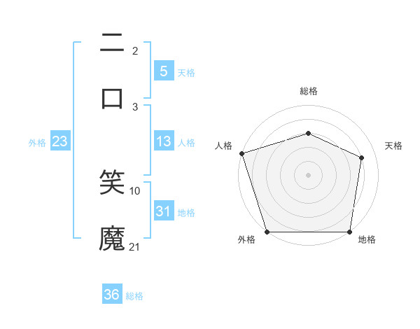 二口 笑魔さんの天格は5画の4点!