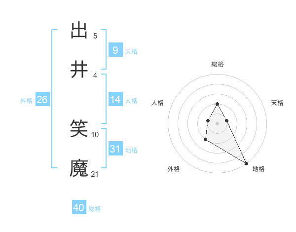 出井 笑魔さんを姓名の画数から五運を鑑定