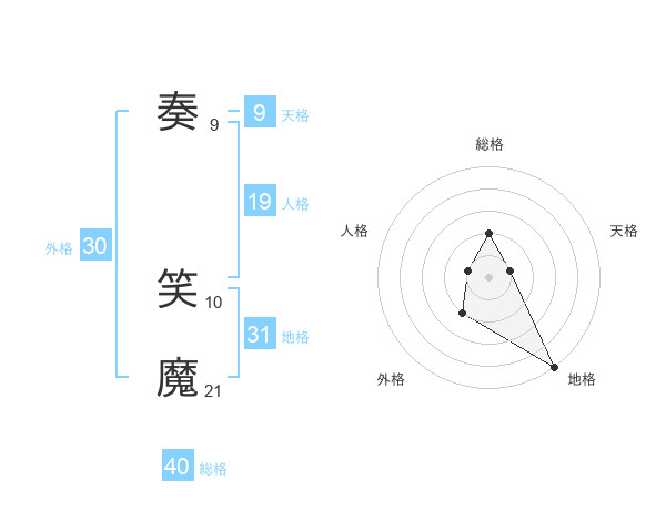 奏 笑魔さんを姓名の画数から五運を鑑定