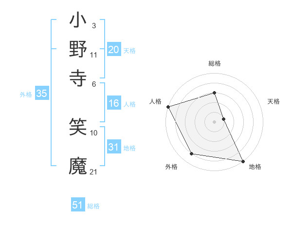 小野寺 笑魔さんを姓名の画数から五運を鑑定
