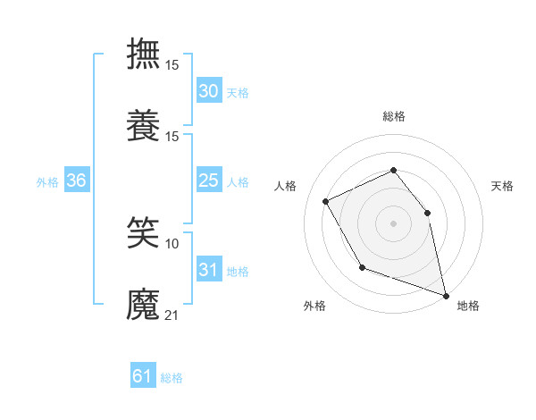 撫養 笑魔さんを姓名の画数から五運を鑑定