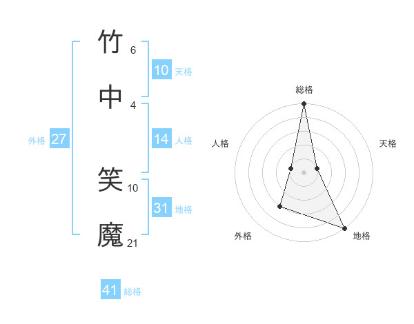 竹中 笑魔さんを姓名の画数から五運を鑑定