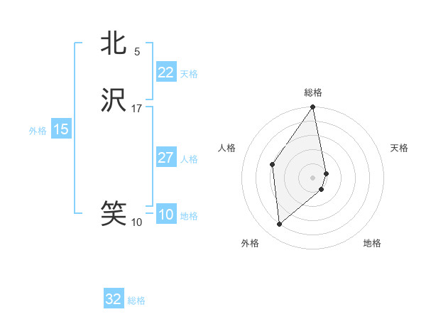 北沢 笑さんを姓名の画数から五運を鑑定