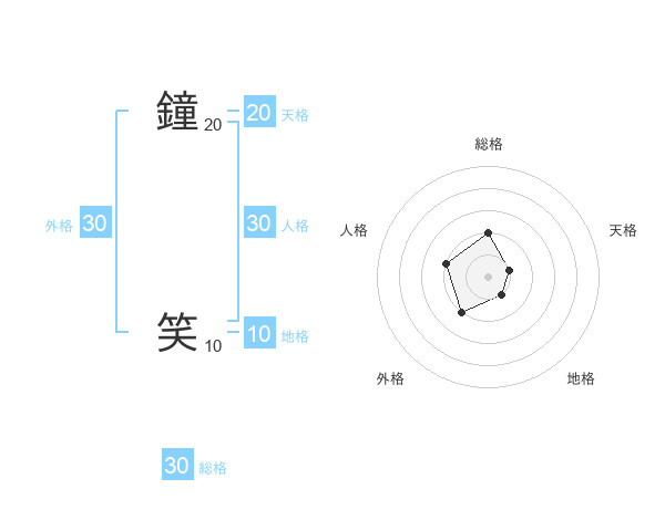 鐘 笑さんの総格は30画の2点!