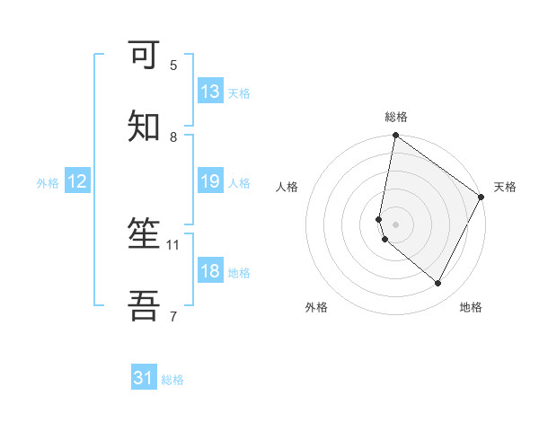 可知 笙吾さんの総格は31画の5点!