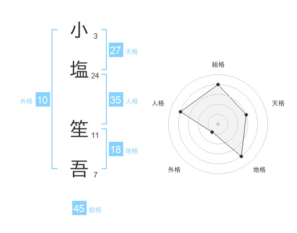 小塩 笙吾さんを姓名の画数から五運を鑑定
