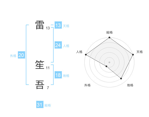 雷 笙吾さんを姓名の画数から五運を鑑定