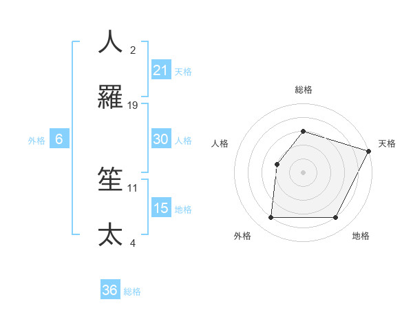 人羅 笙太さんの天格は21画の5点!