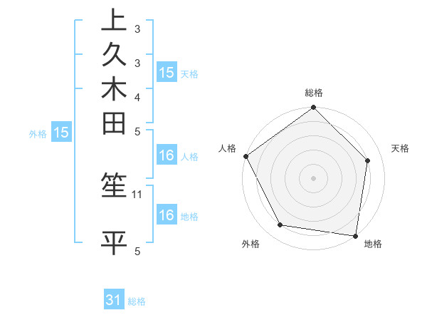 上久木田 笙平さんを姓名の画数から五運を鑑定