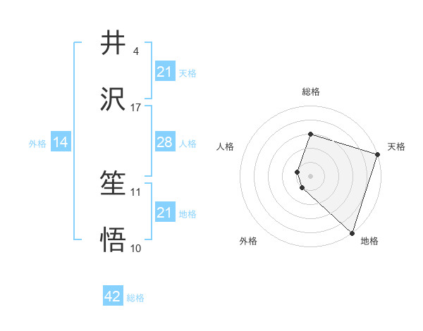 井沢 笙悟さんの地格は21画の5点!