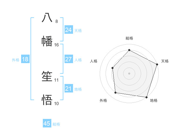 八幡 笙悟さんの総格は45画の4点!
