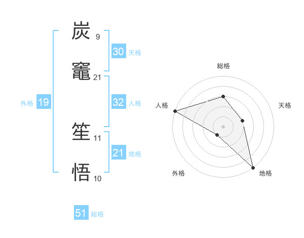 炭竈 笙悟さんの総格は51画の3点!