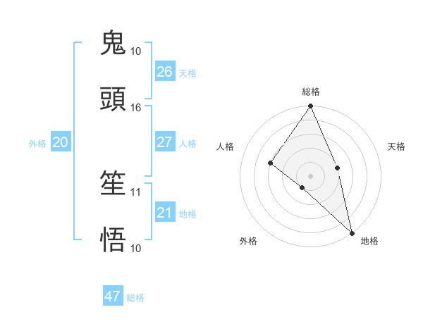 鬼頭 笙悟さんの総格は47画の5点!