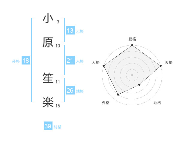 小原 笙楽さんを姓名の画数から五運を鑑定