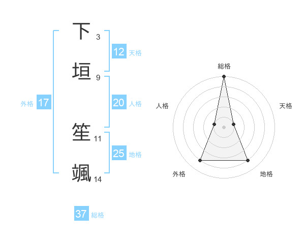 下垣 笙颯さんの総格は37画の5点!