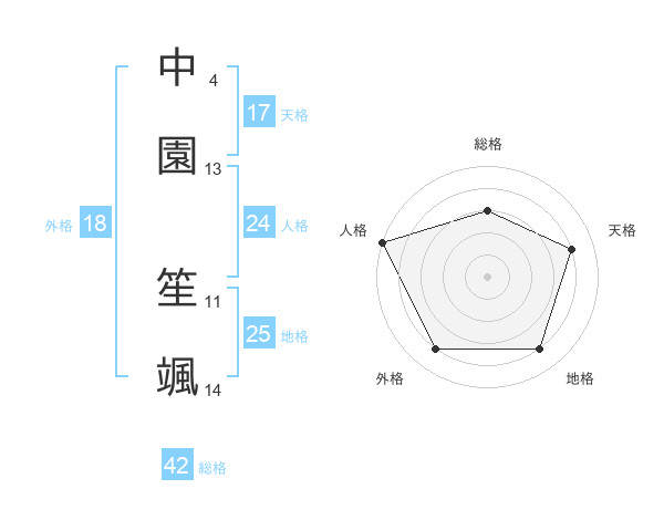 中園 笙颯さんの天格は17画の4点!