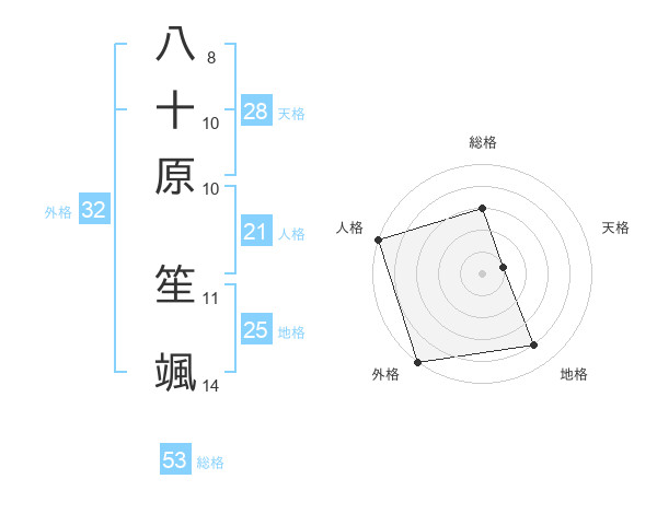 八十原 笙颯さんを姓名の画数から五運を鑑定