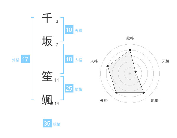 千坂 笙颯さんを姓名の画数から五運を鑑定