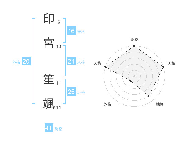 印宮 笙颯さんの総格は41画の5点!