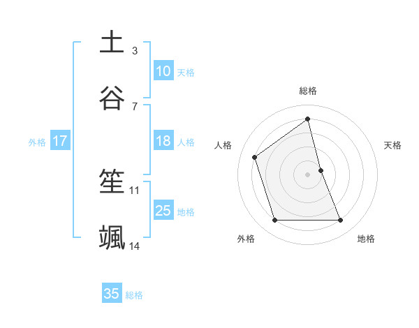 土谷 笙颯さんを姓名の画数から五運を鑑定