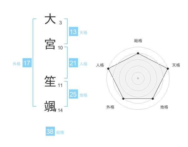 大宮 笙颯さんの総格は38画の4点!