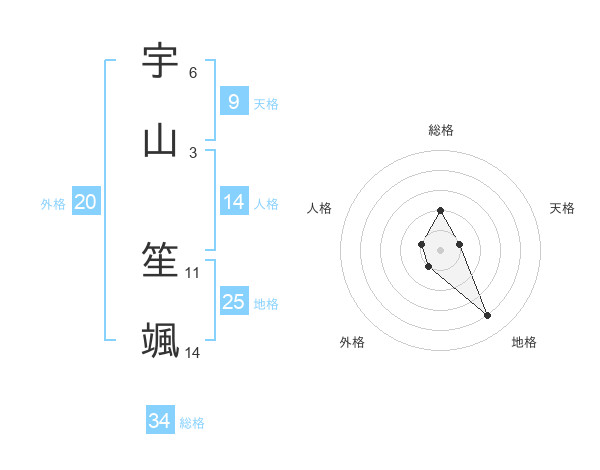 宇山 笙颯さんの総格は34画の2点!