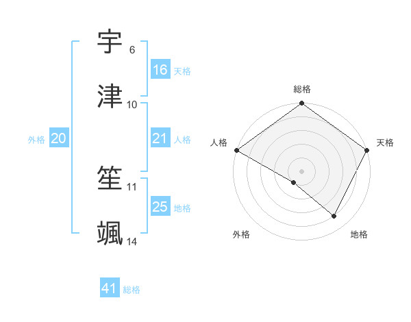 宇津 笙颯さんの総格は41画の5点!